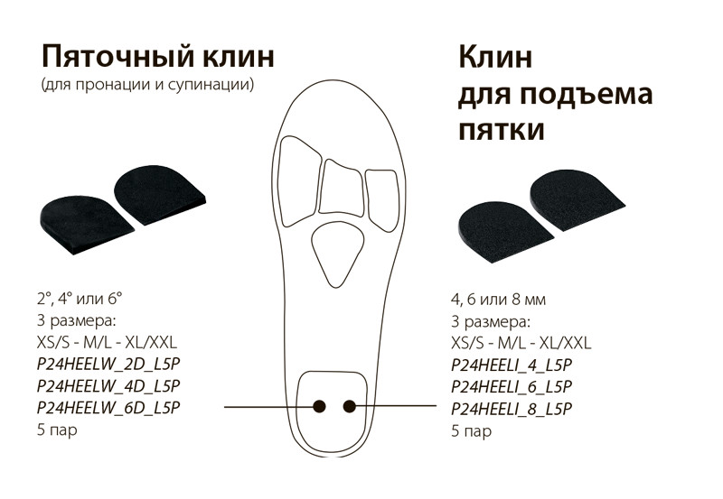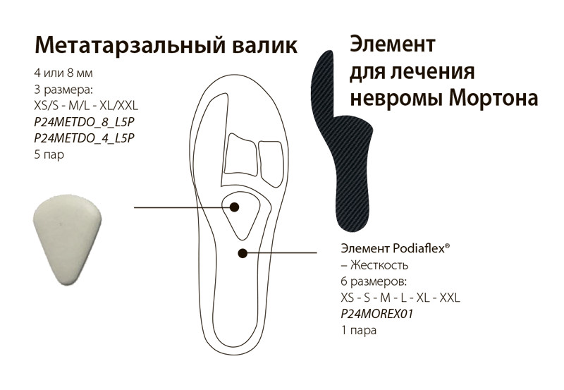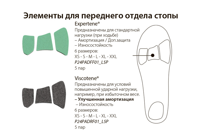 В зависимости от потребностей вашего пациента вы можете индивидуализировать ортопедическое изделие при помощи данных дополнительных коррекционных элементов, предназначенных для переднего, среднего или пяточного отдела стопы.